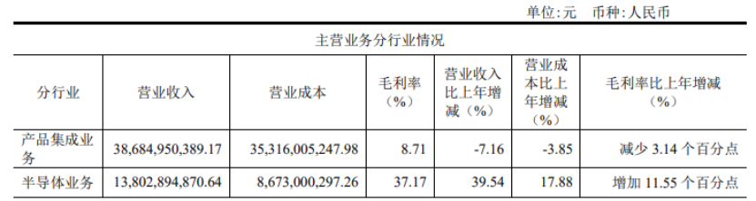 2021年闻泰科技营收和净利增幅较小的原因,主要系产品集成业务的增长劲头不足,该项业务营收不增反亏损。2021 年,闻泰科技的产品集成业务实现的收入为386.8亿元,同比下降7.16%,净利润1.84 亿元,毛利率8.71%。2022 年一季度继续亏损,净亏损 0.40 亿元。加上在项目研发的高投入费用,导致2021年闻泰科技净利润增长幅度较小。