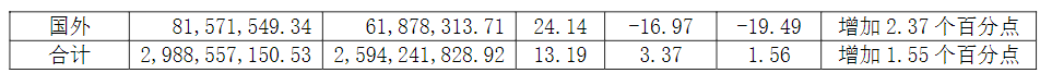 报告期内,公司国外市场收入8,157万元,毛利率24.14%,同比增加2.37个百分点。
