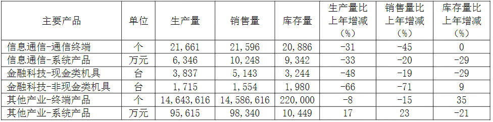 金融科技产业:主要系市场业务萎缩,现金类机具销量同比下降19%。