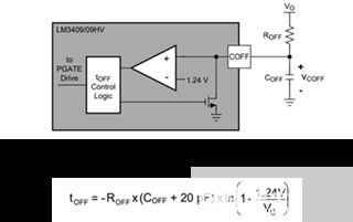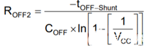 第二步是用tOFF-Shunt 来计算ROFF2, 由VCC经ROFF2对COFF充电,计算公式如下。