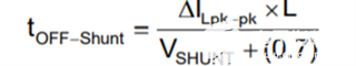 选择 ROFF2 分为两步,第一步是计算输出采用分流电阻器时所需的关闭时间 (tOFF-Shunt), 其中VSHUNT 是负载采用分流电阻时的输出电压。