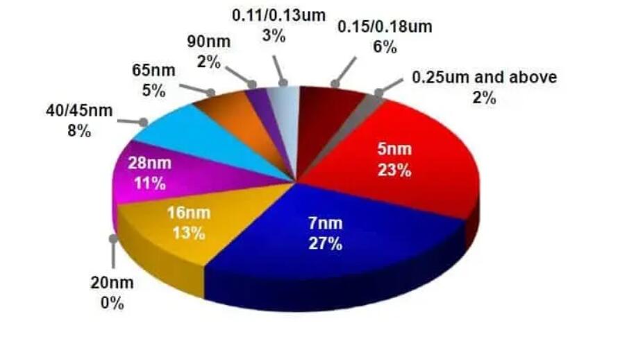 台积电去年第四季度完成营收157.4亿美元,比去年第三季度业绩增长5.7%,比去年同期营收增长21.2%。全年收入达568.2亿美元。同时,这些营收中恰好有一半来自 7nm和5nm的技术,而 2020 年它们仅提供了 41% 的收入。直接 5nm 产品为台积电提供了约 19% 的年收入。