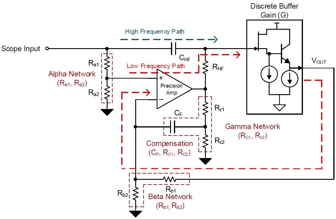 对于任何缓冲放大器来说,实现复合循环架构最大的限制来自低频和高频路径之间的相互依赖性。据Shreenidhi Patil介绍,为了克服这一限制,BUF802可解耦低频和高频路径之间的相互依赖性(如下图所示)。这使得设计人员能够独立设计低频和高频路径,从而简化这两条路径的补偿和匹配。