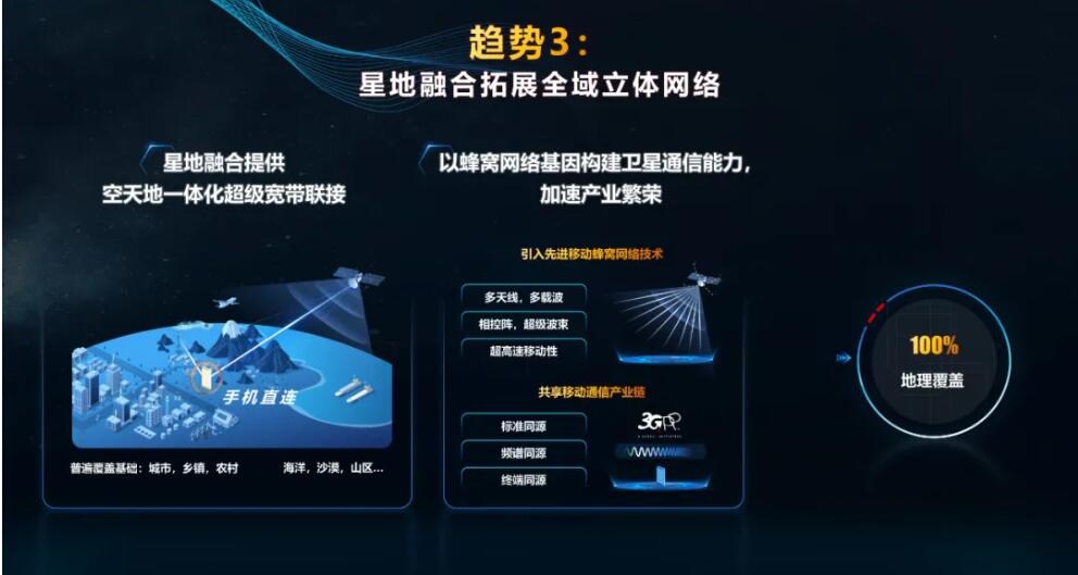 星地融合能够为移动网络在地面补充覆盖,还能实现近地空间的立体覆盖,满足未来无人机、飞机等的通信和控制需求。借助移动网络的先进通信技术和移动通信的数万亿美金产业规模,可以帮助卫星通信的技术成熟和产业繁荣。