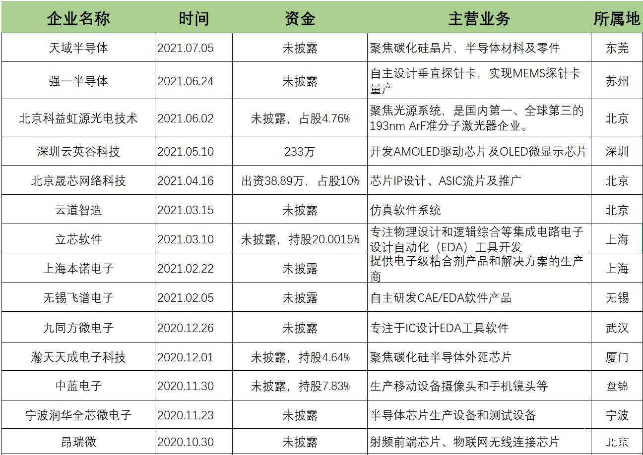 以哈勃科技在6月22日投资北京科益虹源光电,5月10日投资深圳云英谷科技,4月16日投资北京晟芯网络,3月15日投资云道智造,这四家公司分别聚焦光源系统、AMOLED驱动芯片、芯片IP Core设计和ASIC流片、EDA仿真软件来看,哈勃科技的聚焦半导体“硬壳“的投资思路依然十分稳健。围绕5G发展的主潮流,华为哈勃在夯实赛道的基础能力,在最容易被卡壳的光刻机激光器、驱动芯片、EDA等设计等底层软硬件能力持续储备。