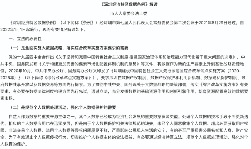 《深圳经济特区数据条例》解读部分内容 / 深圳市人大常委会法工委