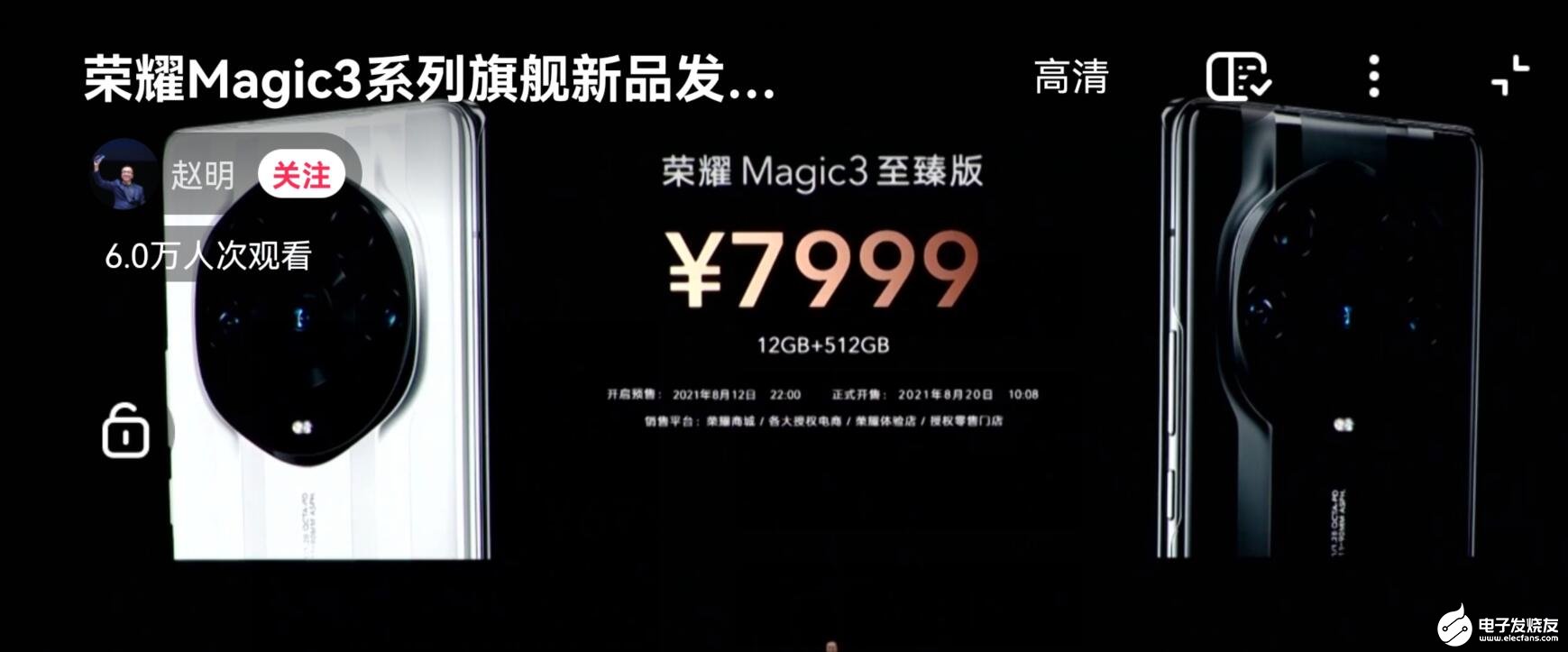 关于消费者最关注的荣耀Magic3的价格,赵明也做了公布。荣耀Magic3系列分为三个版本,分别是标准版、Pro版、至臻版,各自的价格如下: