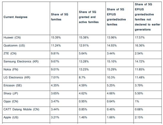 近日,德国知名专利数据公司IPLytics发布了全新的《5G专利竞赛领跑者》(Who is leading the 5G patent race)报告,根据这份报告中IPLytics的相关统计数据显示,目前华为掌握的5G技术相关专利已经位居全球第一的位置,从5G专利分布情况来看,拥有15.4%占比的华为目前拥有巨大的领军优势,而位居2-4位的三星、诺基亚以及高通则差距不大,占比均在13%左右,同样来自中国的中兴通讯则拥有5.6%的5G专利占比。这份截止到2021年2月份的5G专利占比排名未来还将拥有较长的时效性。