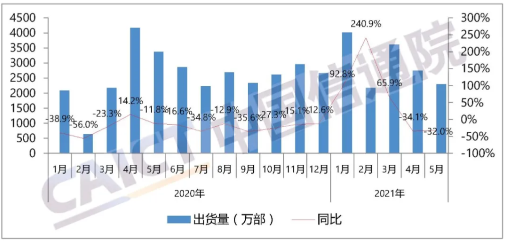 近期,中国信通院公布5月国内手机市场数据显示,5月手机出货量2297万部,同比下降32%,环比4月的2749万部,下降16%。5月5G手机出货量达到1674万部,占同期手机出货量73%,不仅低于4月的77.9%,而且低于3月的76.2%。