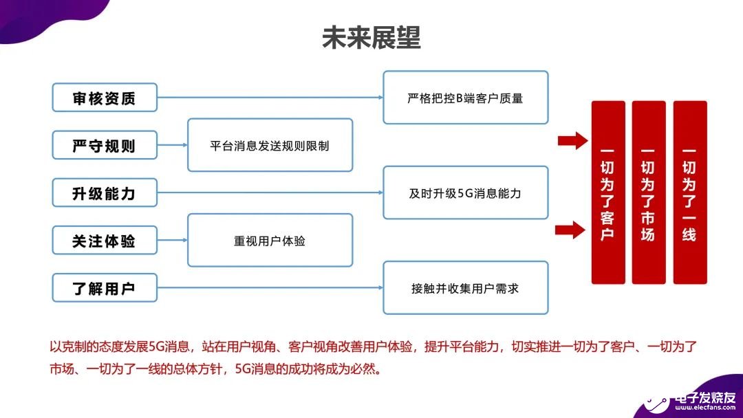展望5G消息下一步发展,李野认为,运营商应以克制的态度发展5G消息,站在用户视角、客户视角改善用户体验,提升平台能力,切实推进一切为了客户、一切为了市场、一切为了一线的总体方针,5G消息的成功将成为必然。