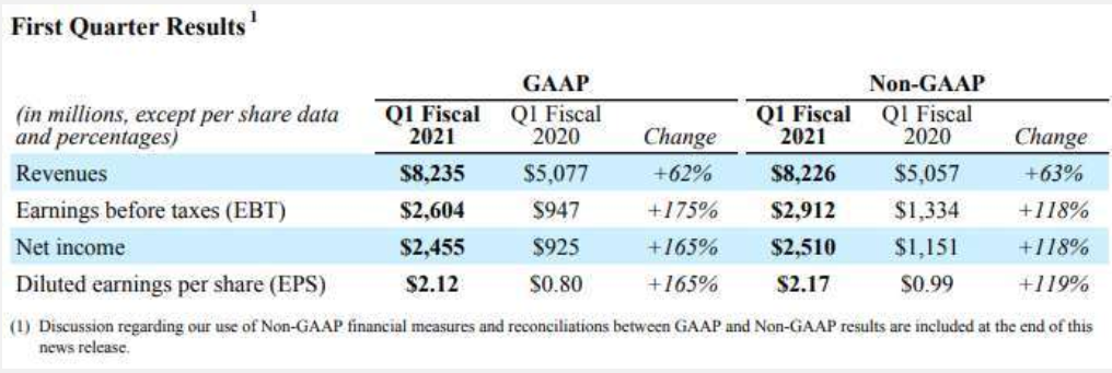 高通公司在2021会计年度Q1营收达到82.3 亿美元,年增62%,略低于 Refinitiv 调查分析师预期的 82.7 亿美元;净利润达到14.55亿美元,年增165%。即将于今年卸任的执行长 Steve Mollenkopf 表示:“受惠于手机、RF-FE、汽车和 IoT 领域对 5G 需求的强劲成长,我们取得出色的季度业绩,第一季营收较去年同期出现双位数成长。”