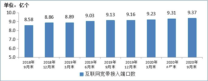 10月20日, 工业和信息化部运行监测协调局发布2020年前三季度通信业经济运行情况,文件显示我国固定宽带接入用户规模稳步增长,千兆固定宽带接入用户数快速提升。据工信部统计,截至2020年9月末,三家基础电信企业的固定互联网宽带接入用户总数达4.76亿户,同比增长5.8%,比上年末净增2682万户。