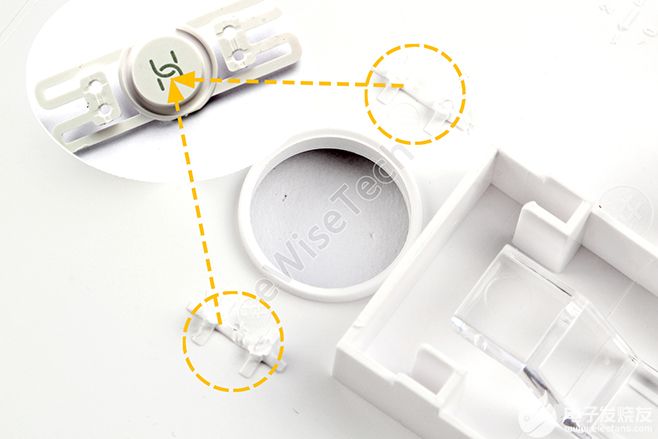 HiLink智联按键通过四根塑料钉固定在正中间。