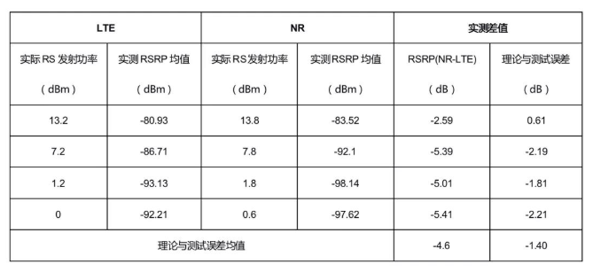 5G 室内采用 2.6GHz 频段,相比 LTE 采用 2.3GHz 频段,功分器、耦合器的直通端、天线的插损在 2.6G 频段和 2.3G 频段基本相当,差值在 0.01dB 左右,影响极小,耦合器的耦合端存在 1.41dB 损耗,1/2 馈线百米损耗 2.6G 相比 2.3G 高 1.4dB。7/8 馈线百米损耗 2.6G 相比 2.3G 高 0.9dB。同时,考虑到墙体损耗和空间损耗等的差异,理论评估 2.6GHz 相比 2.3GHz 的损耗差异约 4.2dB,通过空口覆盖性能测试对比分析,实际测试的空口差异均值约 4.6dB,分析数据如表 2 所示。