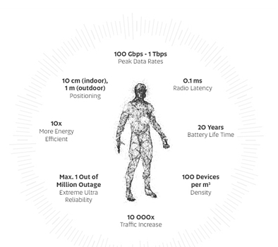 随着新型显示、传感和成像设备以及低功耗专用处理器等技术的发展,现在的智能手机将被一个轻量的眼镜替代,通过超高的网速实现超高的分辨率、帧速率,并能提供虚拟现实、增强现实、混合现实合并为一的“XR”服务,与我们的感官、运动无缝连接。