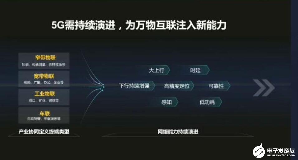 5G要在万物互联中发挥更大的作用,需要更多能力的提升。包括高精度定位,毫米级、厘米级定位,上下行容量、时延、可靠性、低功耗和感知,这些5G网络能力还需要不断提升,才会为下一步的万物互联注入新的能力。