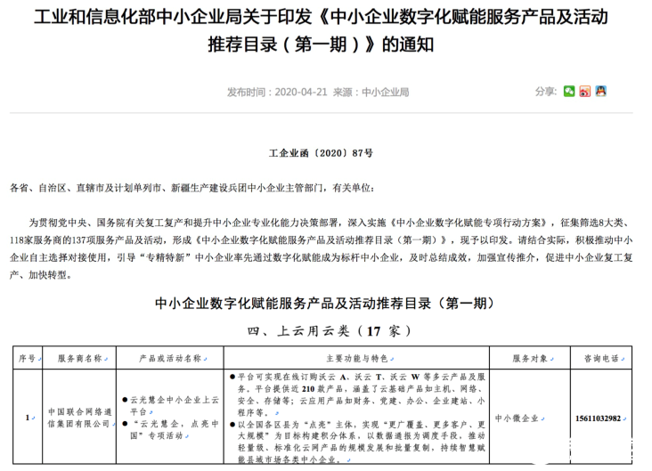 近日,工业和信息化部相继印发了《中小企业数字化赋能服务产品及活动推荐目录》第一期和第二期的通知。中国联通凭借多项成果成功入选推荐目录,成为工信部推荐的中小企业上云用云首选服务商。