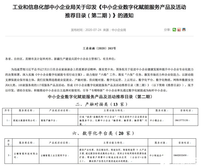 工业和信息化部《中小企业数字化赋能服务产品及活动推荐目录》