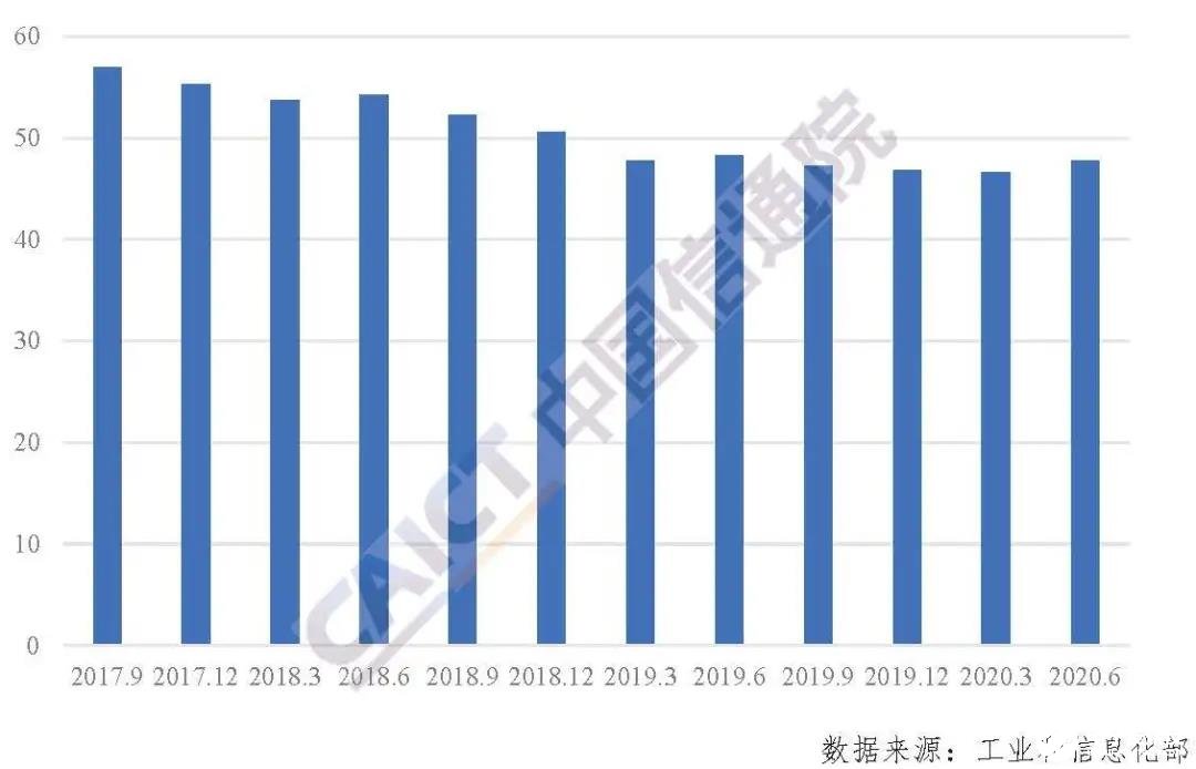 近日,中国信息通信研究院发布《中国宽带资费水平报告》。数据显示,截至2020年第二季度末,我国移动数据流量平均资费为4.3元/GB,同比下降了23.25%;用户月均移动数据使用量为9.52GB,同比增长33.8%;移动通信月户均支出为47.8元,同比略降1.3%。