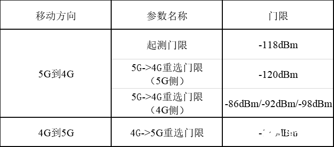 表4 连接态4G/5G互操作参数门限