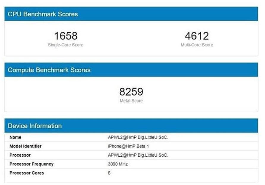 来自GeekBench的数据测试爆光,显示A14芯片频率堆到了3.1GHz,单核跑分1658分,多核4612分。
