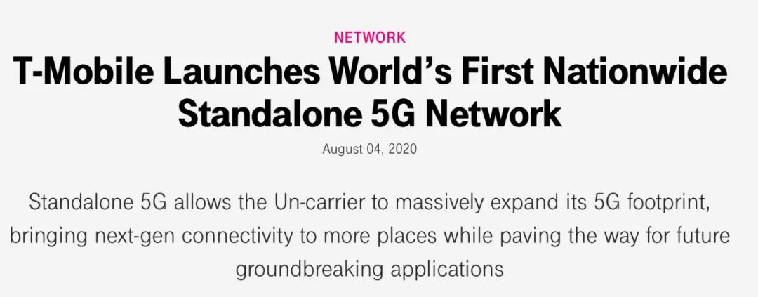 8月4日,美国运营商T-Mobile宣布推出全球首个全国性覆盖的SA(独立组网)5G商用网络。