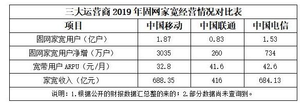 对广大用户来说的最大实惠就是中国移动入场之后,直接迫使中国联通和中国电信跟随降价。工业和信息化部的官方数据显示,2018年我国的宽带价格降幅超过40%。从具体价格方面看,我国的宽带价格从2013年中国移动入场之前的大约70元/月降低到2019年年末时的38元/月附近。三大运营商财报显示,中国移动、中国联通和中国电信的宽带用户ARPU分别为32.8元/月、41.6元/月和42.6元/月。