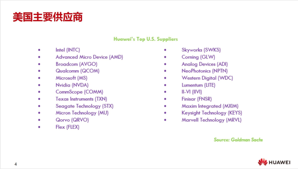 另外,华为官网还曾披露了美国的主要供应链