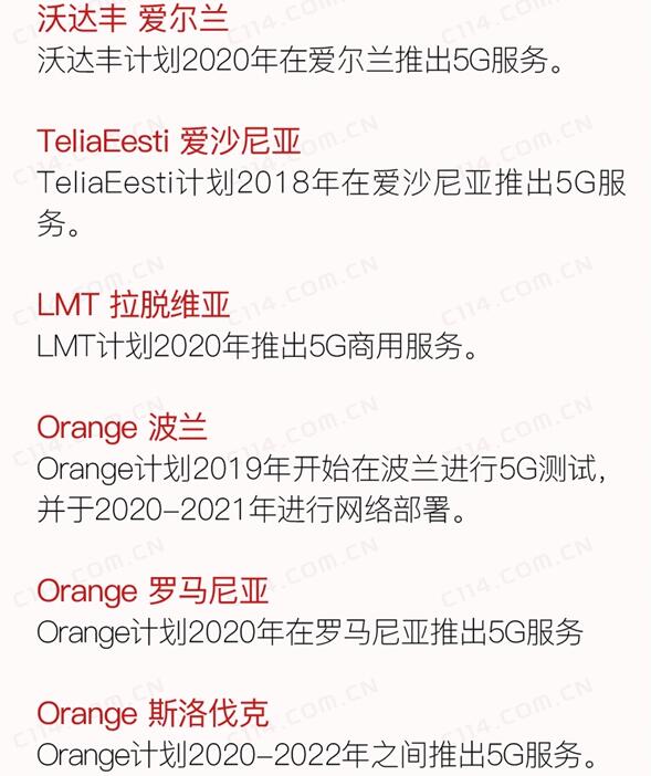 以下为部分主要运营商的5G部署计划表: