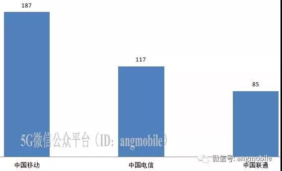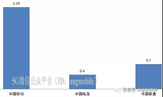 三大运营商2017年底的IoT(物联网)连接数(单位:亿个)情况: