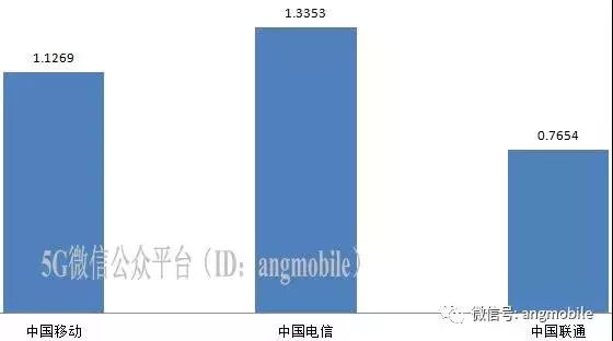 三大运营商2017年底的4G ARPU值(单位:元)情况: