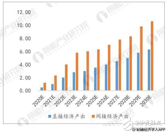5G直接和间接经济增加值贡献,据前瞻产业研究院的报告发布的《5G产业发展前景预测与产业链投资机会分析报告》数据显示,按2020年5G正式商用算起,预计当年将带动约4840亿元的直接产出和1.2万亿元的间接产出,到2030年5G带动的直接产出和间接产出将分别达到6.3万亿元和10.6万亿元,两者年均复合增速分别为29%和24%。从产出结构看,在5G商用初期,网络设备投资带来的设备制造商收入将成为5G直接经济产出的主要来源,预计2020年,网络设备和终端设备收入合计约4500亿元,占直接经济总产出的94%。5G直接和间接经济增加值贡献(万亿元)
