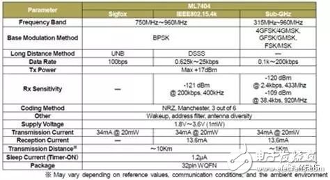 产品特征1. 支持Sigfox和IEEE802.15.4k LPWA双模式ML7404是兼容IEEE802.15.4k和主要在欧洲使用的Sigfox标准的双模式LPWA无线通信LSI。a) 兼容Sigfox标准Sigfox是一种LPWA无线通信系统,目前正在全球30多个国家/地区使用。b) 支持IEE802.15.4k标准由IEEE定义的802.15.4k标准的特征在于其基于正交扩展码的DSSS(Direct Sequence Spread Spectrum,直接序列扩频),并且与其它扩频通信方法相比,抗同一系统干扰能力强。此外,它可以在同一个网络容纳更多的终端。该协议使用无需授权的高可靠性sub-GHz频带。