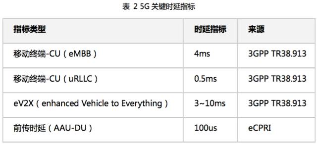 3GPP 等相关标准组织关于5G时延的相关技术指标如下表所示。
