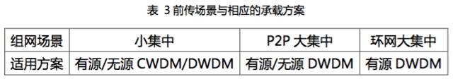 针对5G前传的3个组网场景,可选择的承载技术方案建议下表所示: