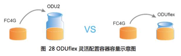 传统ODUk按照一定标准容量大小进行封装,受到容量标准的限制,容易出现某些较小颗粒的业务不得不用更大的标准管道容量进行封装,造成网络资源浪费。