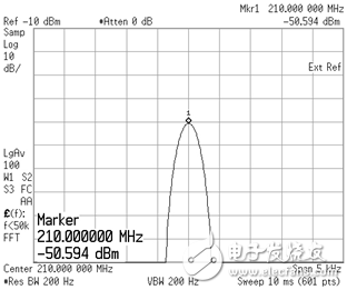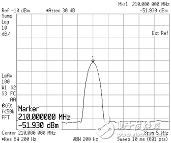 图 5:30dB 频谱分析仪输入衰减时一个0dBm CW 70MHz 音调的三次谐波