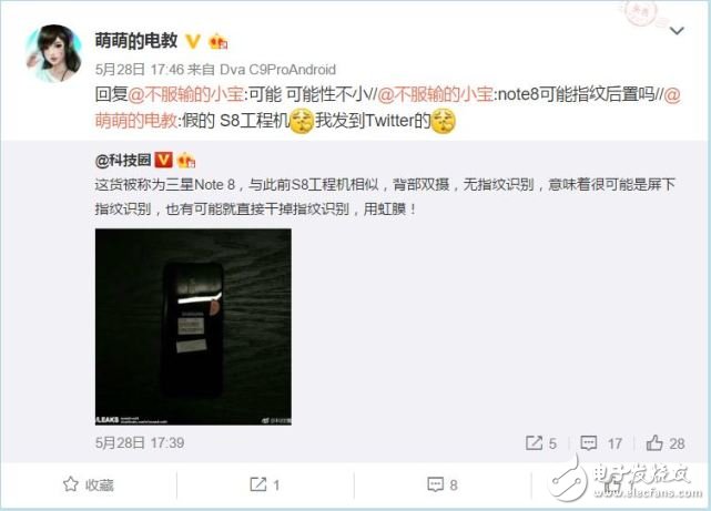 同时网友@萌萌的电教还表示测试通常需要三个月的时间,似乎暗示这款新旗舰或将在今年9月份与我们见面。而在此前,这位爆料三星新机向来准确的网友还在微博上表示,三星GALAXY Note 8相当于添加了手写笔的GALAXY S8+,并且仍是后置指纹解锁的可能性较大。
