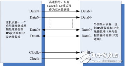 MIPI-DSI利用单端和差分信号线进行数据传输,LP模式下进行单端数据传输,HS模式下进行差分数据传输,使用可以双向传输的Data0+/Data0-数据Lane进行配置。