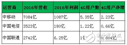 2016年三大运营商都实现了营收和利润的双丰收,中国移动是最大的赢家,营运收入达7084亿元、净利1087亿元;中国电信表现中规中矩,营收3523亿元、净利润180亿元;中国联通稍显逊色,2016年营收2742亿元,净利润仅为6.25亿元。