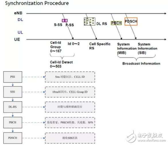 1)UE开机,在可能存在LTE小区的几个中心频点上接收信号(PSS),以接收信号强度来判断这个频点周围是否可能存在小区,如果UE保存了上次关机时的频点和运营商信息,则开机后会先在上次驻留的小区上尝试;如果没有,就要在划分给LTE系统的频带范围内做全频段扫描,发现信号较强的频点去尝试;