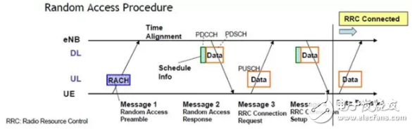 在同步和小区搜索过程结束之后,紧接着就是随机接入过程,整个随机过程的示意图如下: