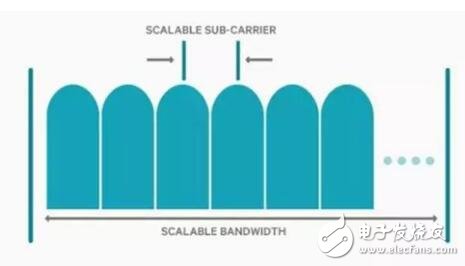 今天,通过 OFDM 音调(通常称为子载波)之间的 15 kHz 间隔——这几乎是固定的 OFDM 参数配置,LTE 支持最多 20 MHz 的载波带宽。借助 5G NR,我们已推出可扩展的 OFDM 参数配置,它能支持多种频谱频段/类型和部署模式。例如,5G NR 必须能够在有更大信道宽度(例如数百MHz)的毫米波频段上工作。我们的设计引入能够随着信道宽度而扩展的 OFDM 子载波间隔,当 FFT 为更大带宽扩展尺寸的时候,也不会增加处理的复杂性。