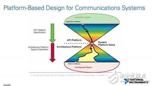 上层是一个应用的空间,有多种的应用。中间的点是软件平台化的点,下层是硬件系统的架构平台(Architecture Platform),一个应用可以使用不同的硬件,但我们可以使用统一的一个软件接口来实现这个应用。同理,你可以使用一个软件接口寻找到其他的硬件架构。工程师使用一个统一的软件设计平台,可以大量减少他们的工作量,提升工作效率。