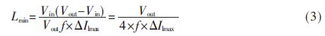 式中:Vin为主电路输入电压,f 为开关频率,Lmin为电感量最小值,△Ilmax为电感电流纹波最大值。升压电感最小取值随之确定,为108 μH。