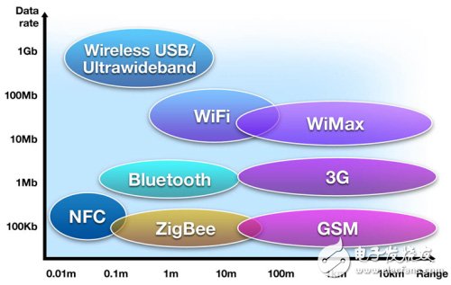 无线设备间的通信,原本只在于FM、红外线与蓝牙的区域内竞争。红外线的功率低,但距离短;FM的距离长但是数字化信号不佳;蓝牙可传递数字信号,但距离短,耗电量大。原本这些通信接口在各领域间相互竞争,随着手机功能多样化需求,这些接口皆成为标准内建接口,而NFC是最晚加入手机的通信接口,也代表所有的通信接口目前是在手机上和平共存的型态,从先前的竞争逐渐转变成既竞争又合作的巧妙情况(图1)。