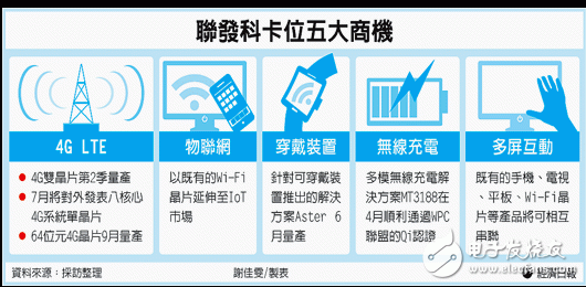 亚洲手机芯片龙头联发科股东会致股东报告书出炉,强调将锁定4G LTE网络、物联网、穿戴式装置、无线充电、多屏互动等五大商机,将公司带入下一个成长阶段。