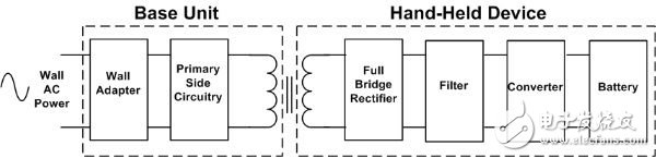 无线充电是透过使用空气(air-core)变压器来实现的。一次线圈位于充电板,二次线圈位于设备本身。充电板在二次线圈感应出电流,此电流透过手持设备内的全桥整流器及额外电路,产生直流电压来为电池充电。图1显示无线充电电路的方块图。基座采用标准墙式插座供电。一旦手持设备置于基座上,电池就开始充电。
