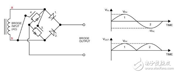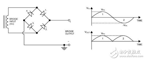 图2:采用4颗二极体的全桥整流器配置。