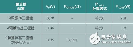 表1:三种整流桥应用方案的功率损耗比较